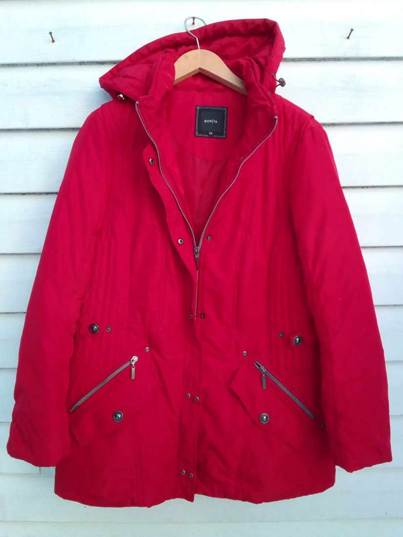 CZERWONA KURTKA BONITA DLA PUSZYSTYCH,KAPTUR ODPINANY,
