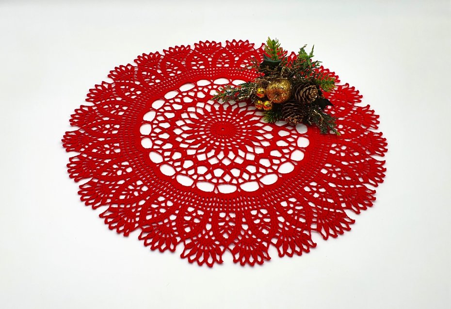 Tagi: #serweta czerwona, #serweta na stół na świąteczna, #serweta okrągła, #serweta szydełkowa