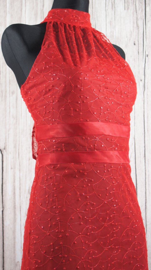 Śliczna delikatna sukienka dwuwarstwowa.Brak informacji o materiale. Moim zdaniem podszewka nylonowa, na wierzchu żorżeta. Wyszywana.