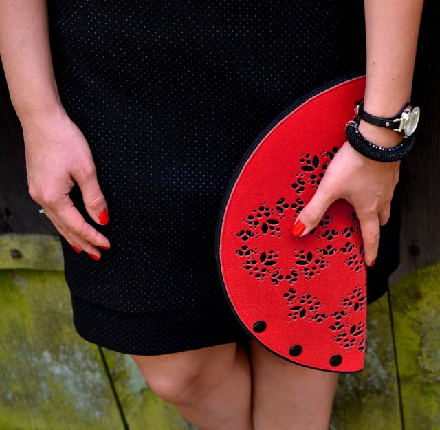 - materiał: czerwona sztuczna skóra ekologiczna, usztywnienie stanowi czarny 4 mm filc