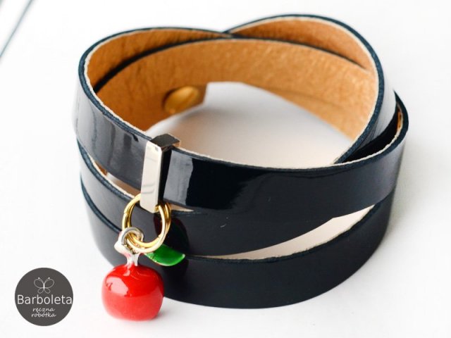 Ozdobiona przywieszką - emaliowanym czerwonym jabłuszkiem.