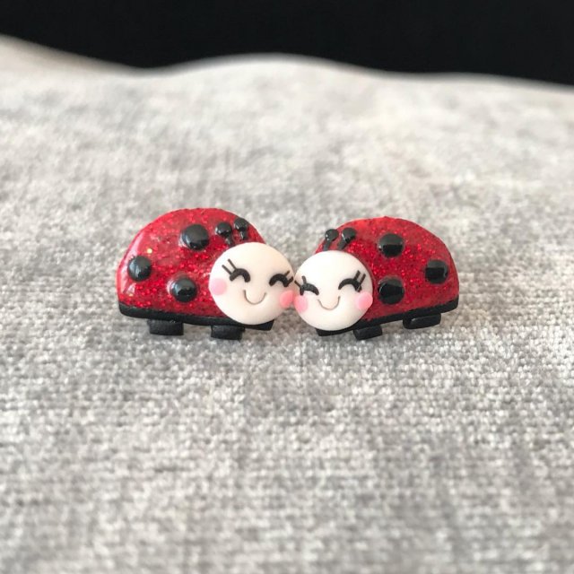 Zabawne kolczyki wykonane ręcznie z masy termoutwardzalnej Fimo. Wielkość kolczyków to ok. 1,2 cm. Sztyfty wykonane są ze stali chirurgicznej. Kolczyki świetne na prezent. Zobacz moją całą galerię w Decobazaar!