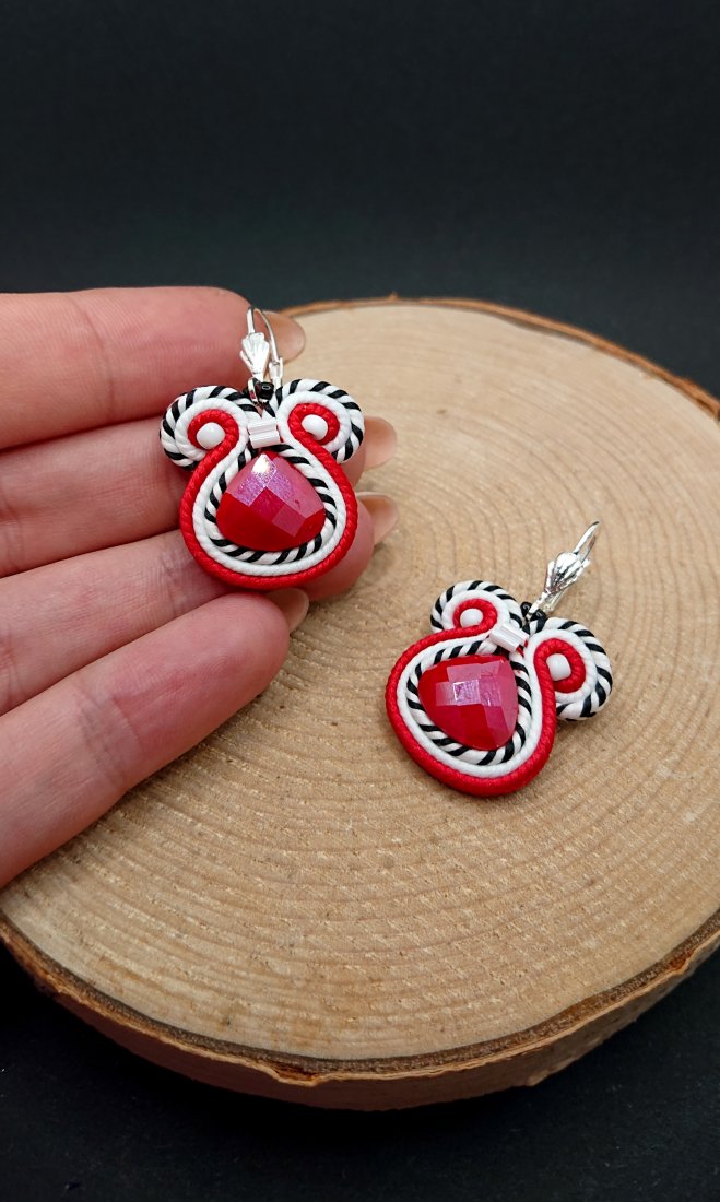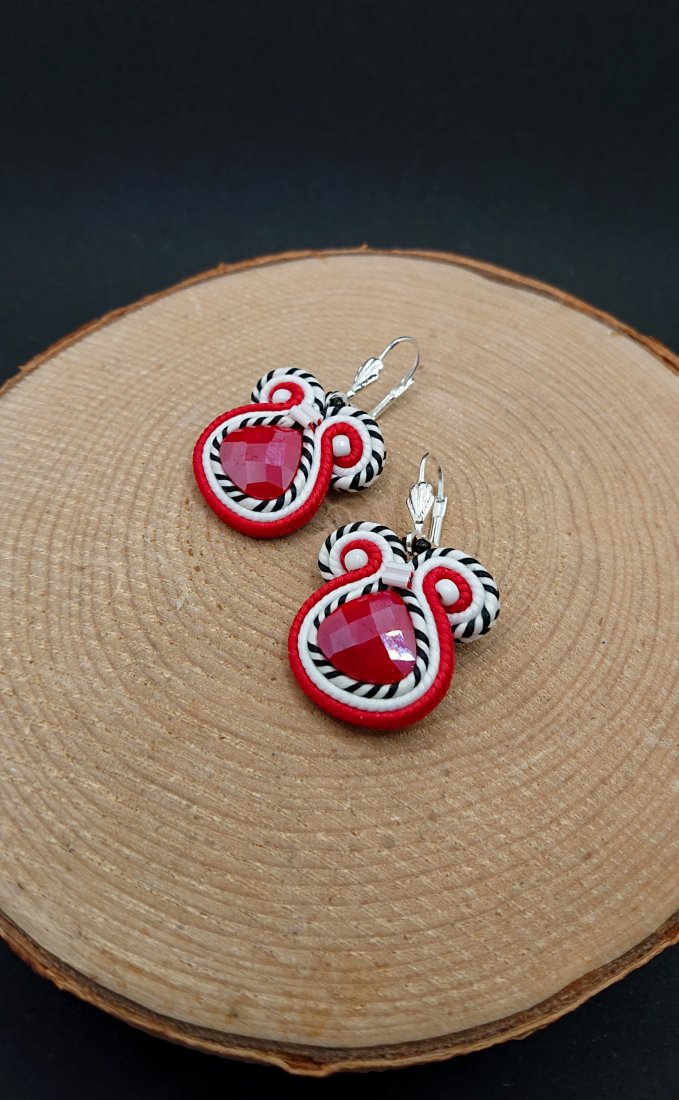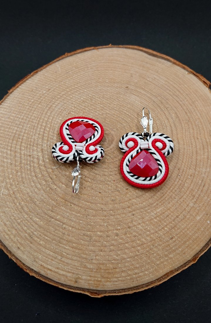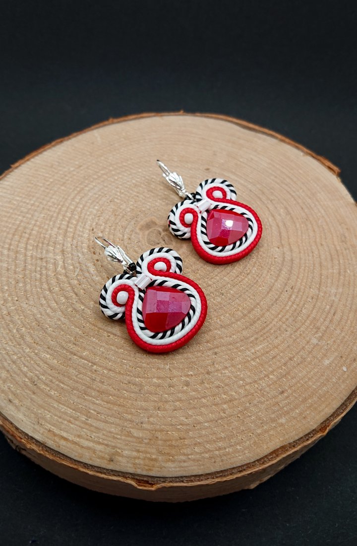 Czerwono-białe kolczyki sutasz z kryształkami