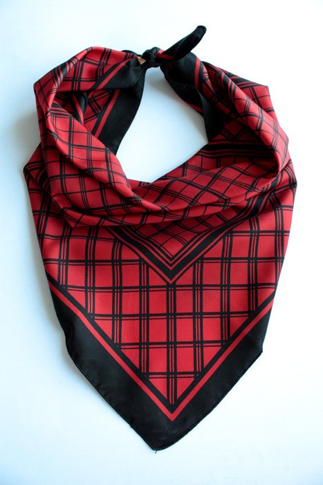 Oryginalna, czerwono-czarna chusta. Materiał to syntetyk.