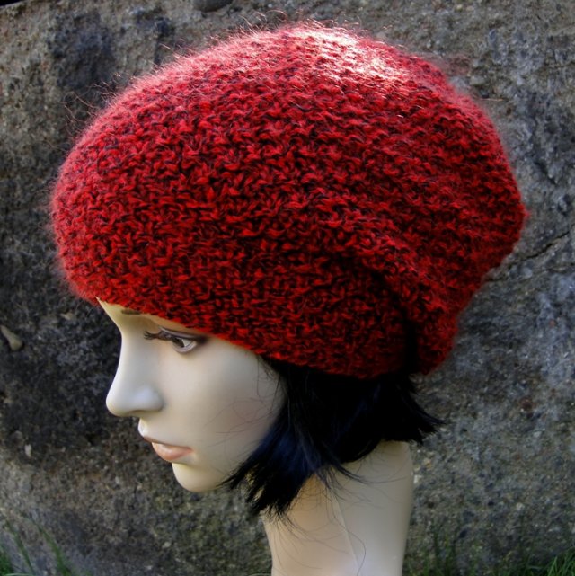 Czapa wykonana ręcznie na drutach z akrylowej czerwono- czarnej włóczki prod. portugalskiej połączonej z cieniutką, delikatną włóczką moherową (ciepła, mięsista i przyjemna w dotyku, posiada dyskretny włosek). Rozmiar czapki : obwód głowy od 54-56 cm, wysokość ok. 31 cm ( wydłużony fason). Bardzo twarzowa, fajnie się układa. Polecam serdecznie