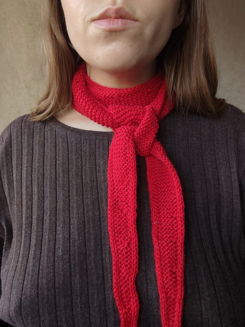 Wełniany wąski szalik w pięknym czerwonym kolorze. Każdej stylizacji doda odrobiny świątecznego klimatu.
