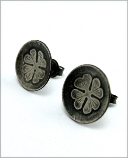 Autorskie kolczyki wykonane od podstaw własnoręcznie z oksydowanego srebra próby 925 . Średnica elementu 1,3 cm ,sztyfty srebrne 925,oksydowane. Naszą biżuterię pakujemy w ozdobne pudełeczka. Zapraszamy do obejrzenia innych naszych prac. Krzysztof i Joanna Jędrzejczak
