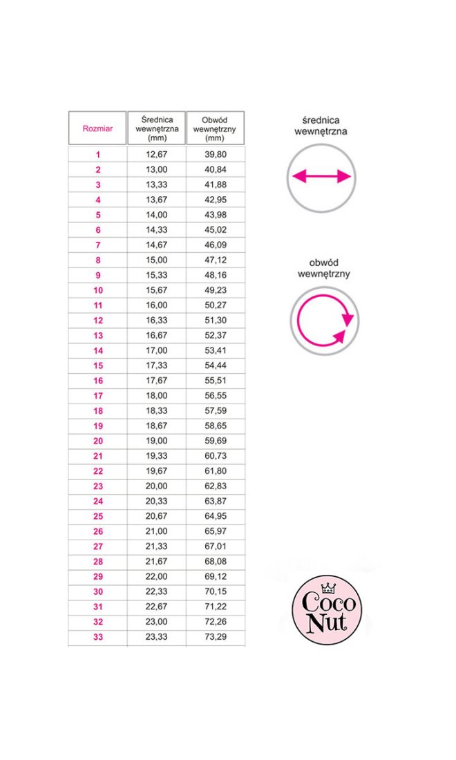 Po zakupie prosimy podać rozmiar / rozmiary wg tabeli. Uwaga: obrączki wykonywane są na zamówienie - na podstawie podanego rozmiaru, Czas realizacji może wynieść do 14 dni.