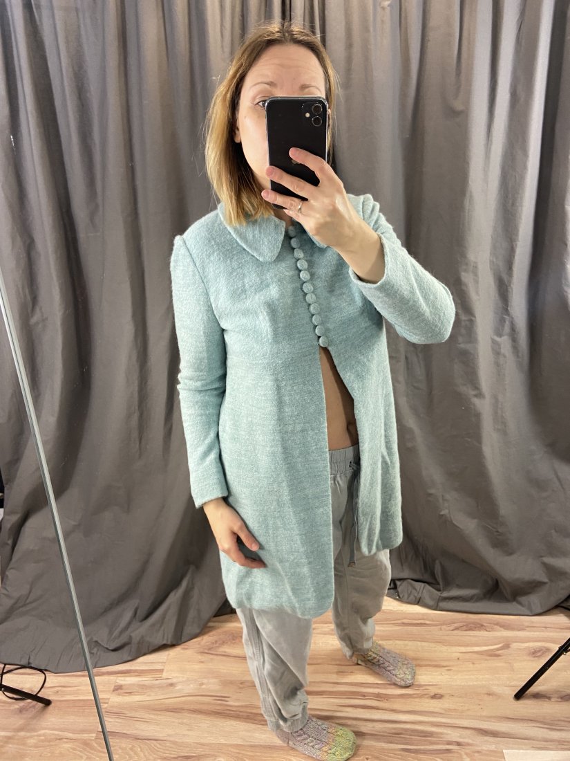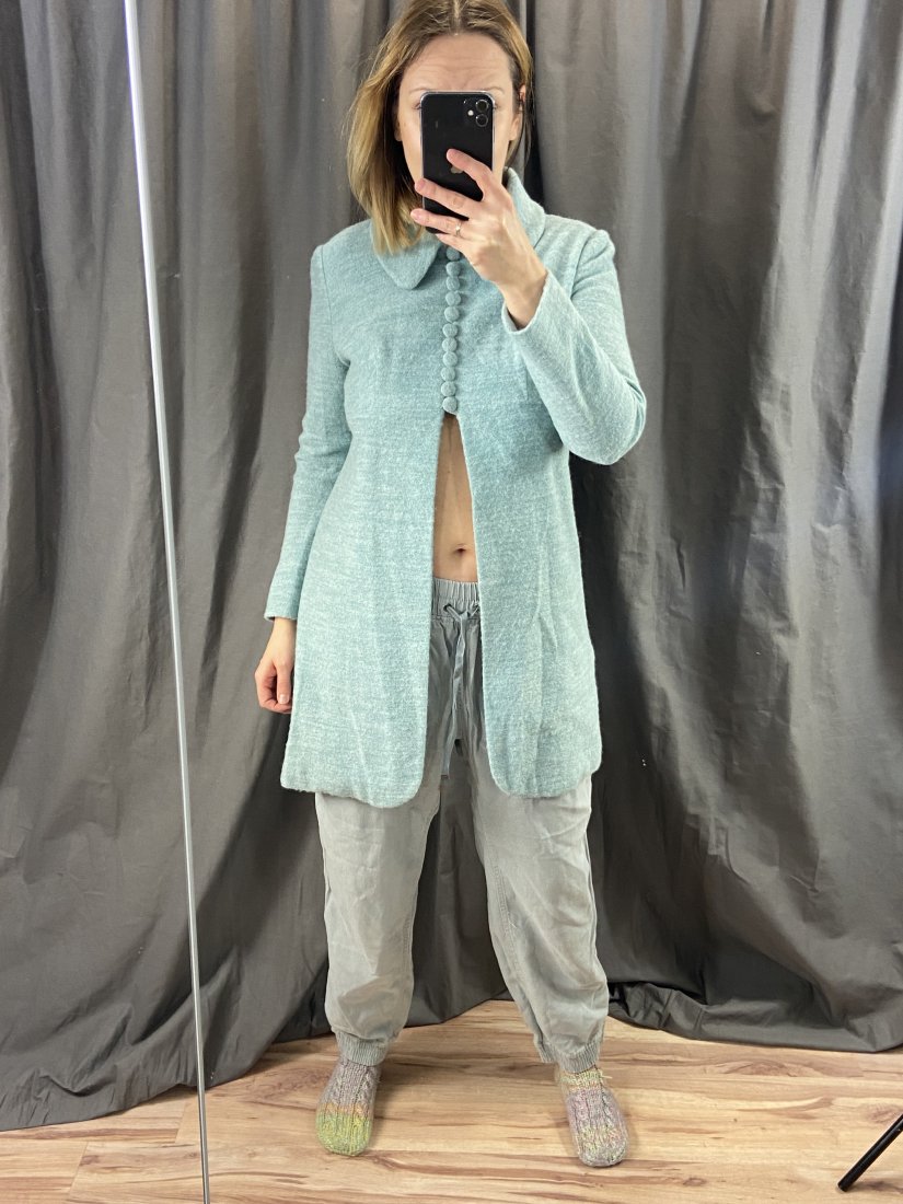 Żakiet/wiosenny płaszczyk wełniany. Przepiękny. Wełna parzona. Zapinany na guziczki. Miętowy kolorek. Wspaniałe dopełnienie stylizacji! Miał metkę twórcy/czyni, ale została wypruta.