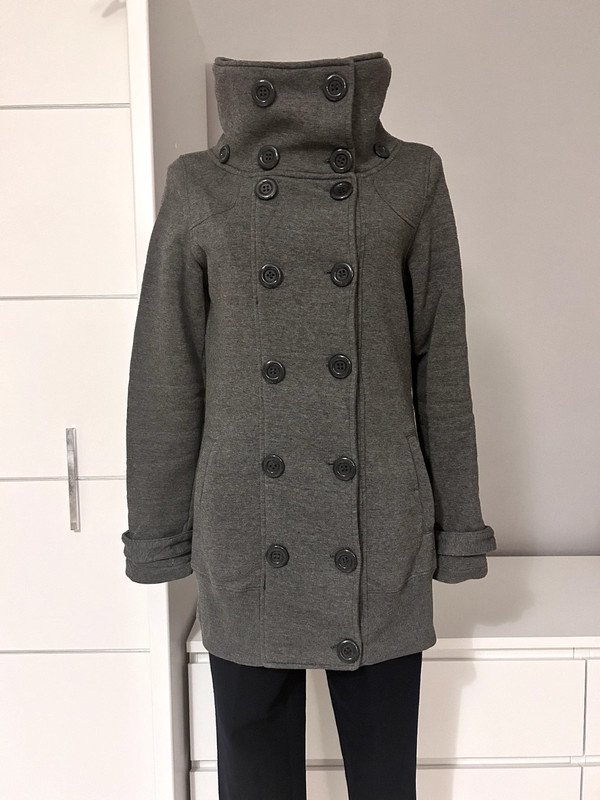 Płaszcz marki D&T, rozmiar z metki to L 40 ale moim zdaniem jest to M 38. Przed zakupem mogę podać wymiary, żeby upewnić się czy pasuje. Jest wykonany w 80% z bawełny. Płaszcz na rękawie posiada dziurkę, która nie jest widoczna podczas użytkowania i można łatwo ją zszyć, ale wolałam ją pokazać.