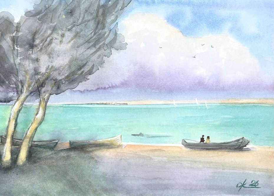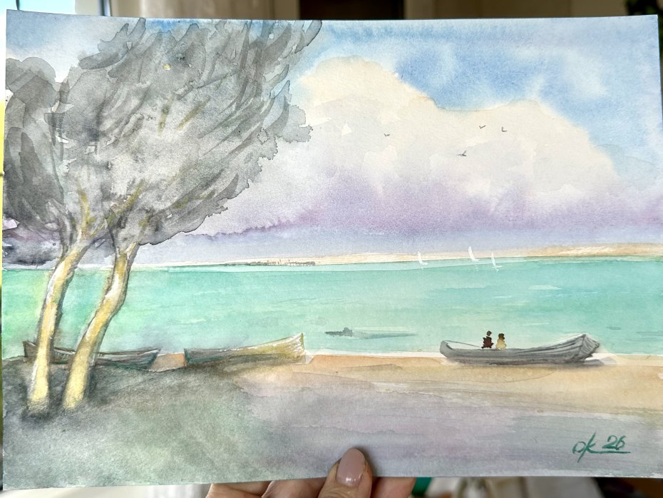 Daleki brzeg originally akwareli A4 ręcznie malowana.