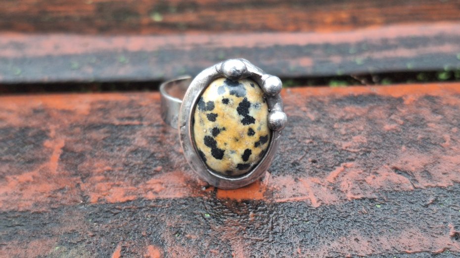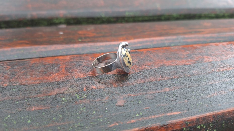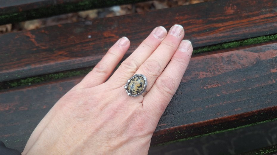 Tagi: #czarno biały pierścionek, #pierścionek z jaspisem, #regulowana obrączka, #regulowany pierścionek