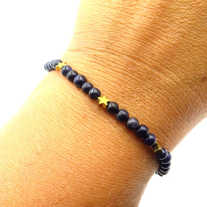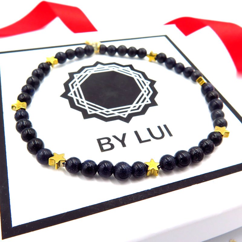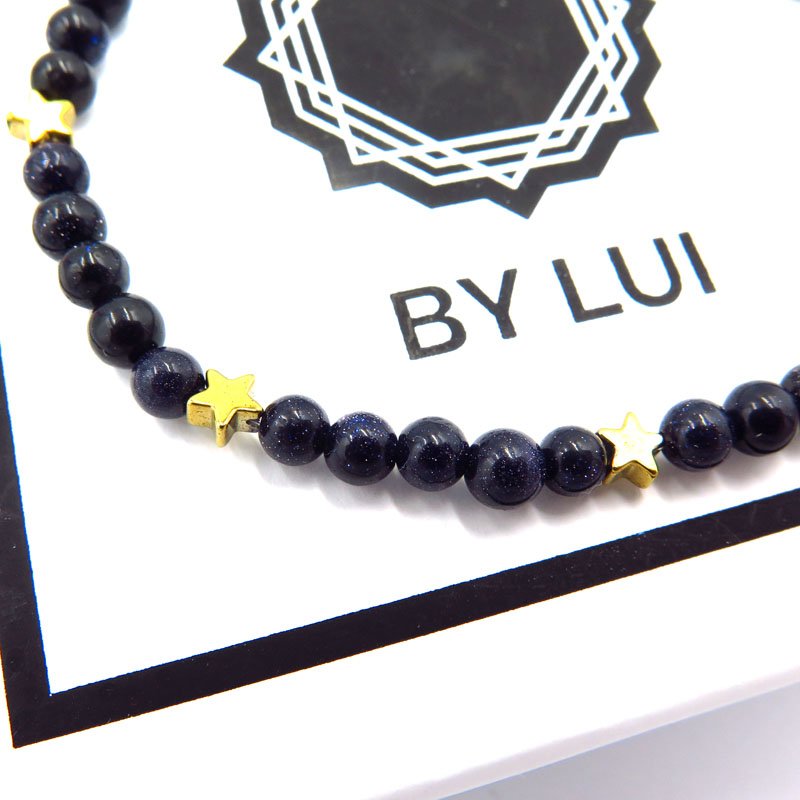 MYSTICAL CAIRO STARS bransoletka ze złotymi gwiazdkami- hematytami oraz granatowym kamieniem- Nocą Kairu. Naturalne kamienie migoczą niczym niebo tysiącem gwiazd w Kairze! Ta urocza bransoletka będzie świetnym upominkiem dla ukochanej osoby.