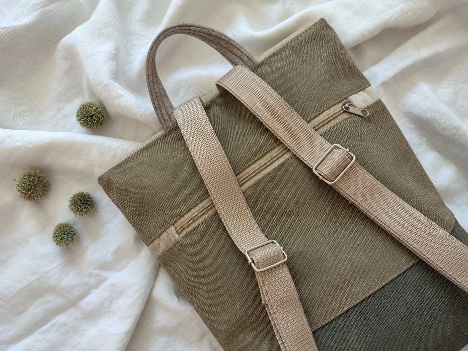 Tagi: #gruba bawełna, #plecak damski, #płótno bawełniane, #szyte maszynowo