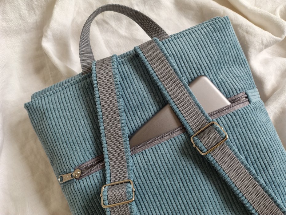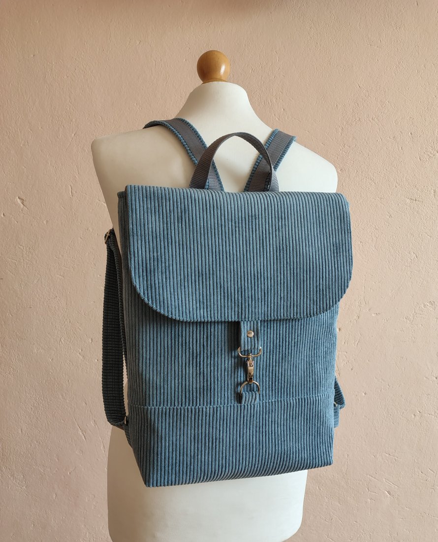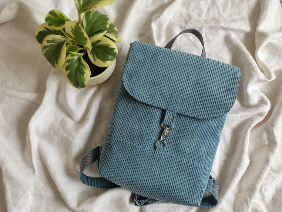 Tagi: #damski plecak, #plecak szałwia, #sztruks tapicerski, #szyte maszynowo