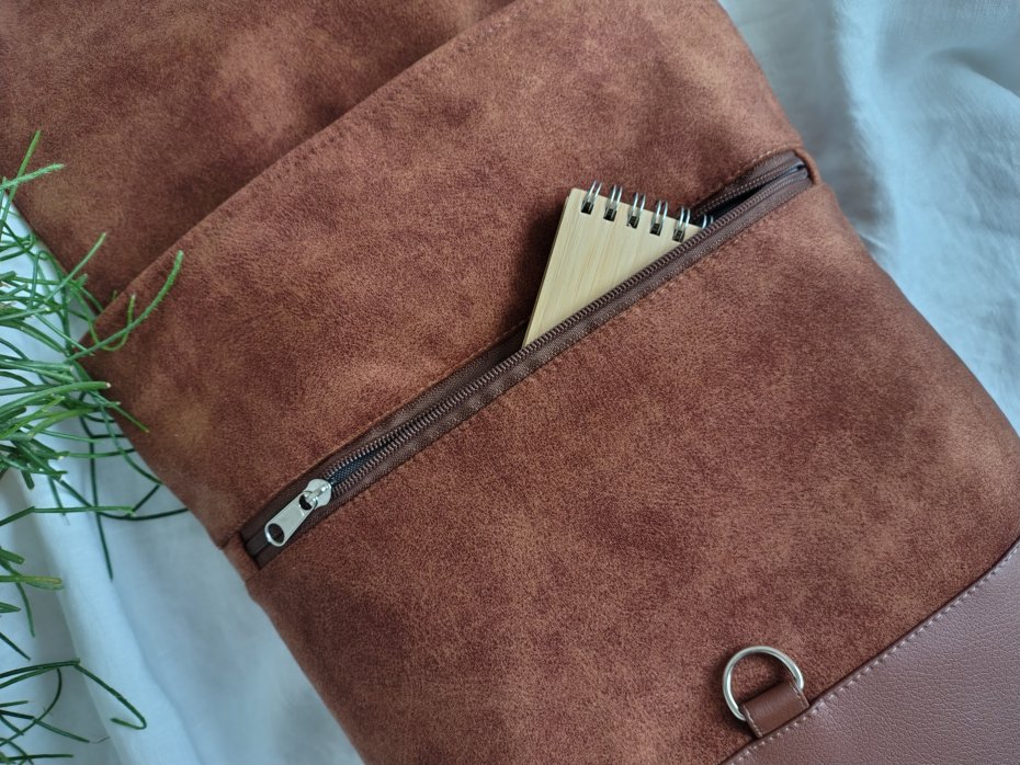 Do plecaka możesz zapakować laptopa 13'' lub 14'', dokumenty, książkę oraz mniejsze przedmioty takie jak np. telefon, portfel, klucze oraz butelkę wody. Wewnątrz dwie otwarte kieszenie. Z przodu pod klapką kieszeń zamykana na suwak.