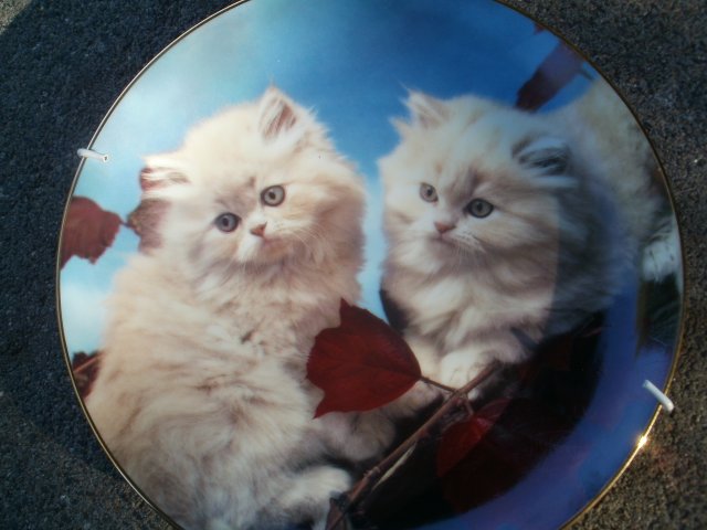 Kolekcjonerski talerz porcelanowy, sygnowany DENBURY MINT z kolekcji PURRFECT PORTRAITS. Tu " AUTUMN COMPANIONS ". Dla odmiany realistyczne kocie przedstawienie; )