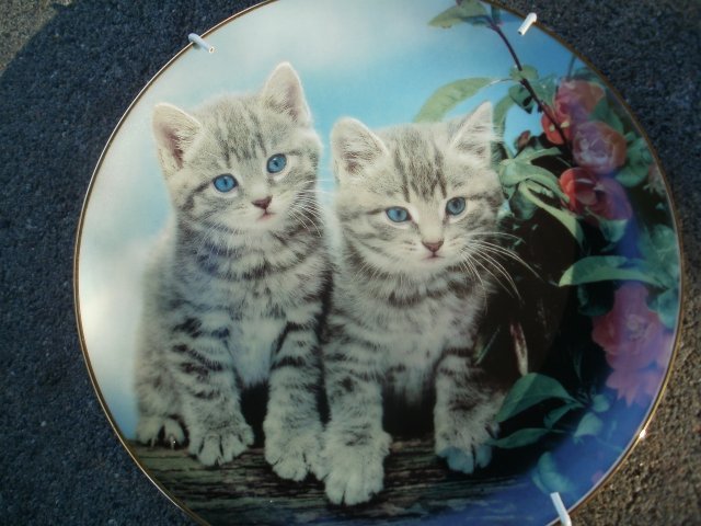 Kolekcjonerski talerz porcelanowy, sygnowany DENBURY MINT z kolekcji PURRFECT PORTRAITS. Tu " TWO OF A KIND ". Dla odmiany realistyczne kocie przedstawienie; )