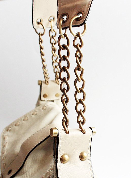Torba marki David Jones wykonana prawdopodobnie ze skóry naturalnej łączonej z tkaniną. wewnątrz 2 kieszonki.
