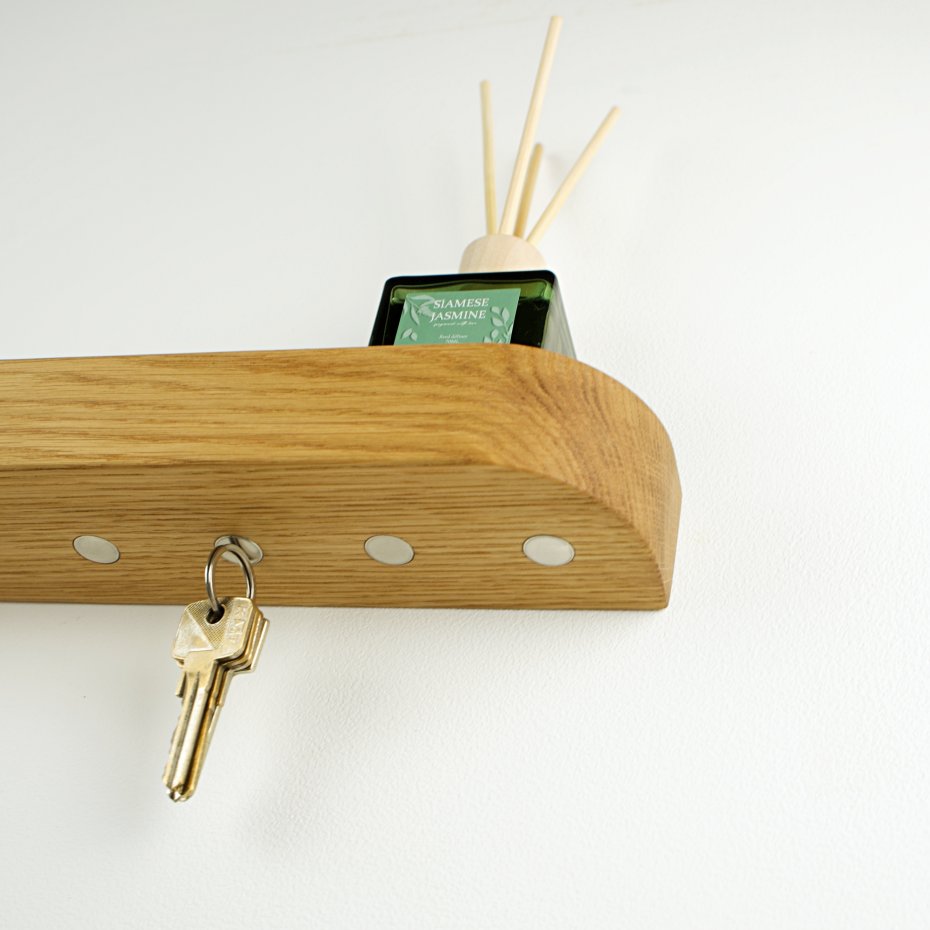 Wprowadź do swojego przedpokoju harmonię, porządek i ponadczasowy styl dzięki dębowemu wieszakowi na klucze, wykonanemu z najwyższej jakości litego drewna dębowego. To połączenie minimalistycznego designu, rzemieślniczej precyzji i maksymalnej funkcjonalności – idealne dla osób ceniących estetykę oraz trwałość na lata.