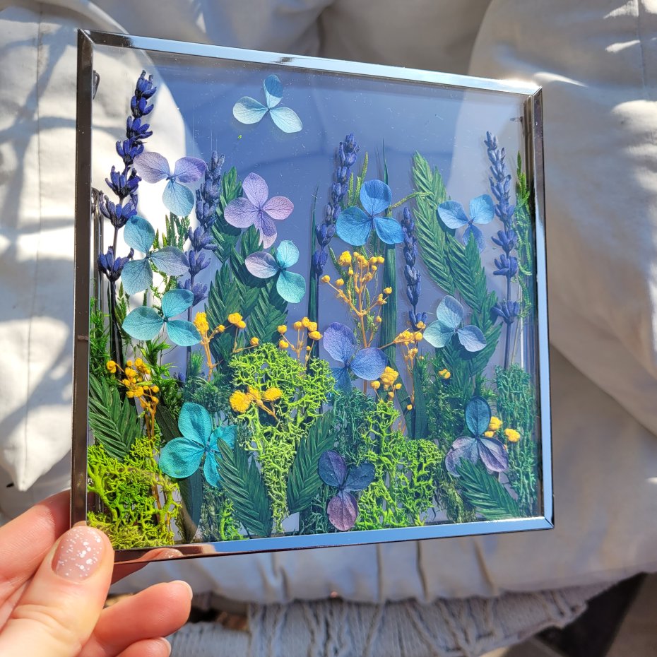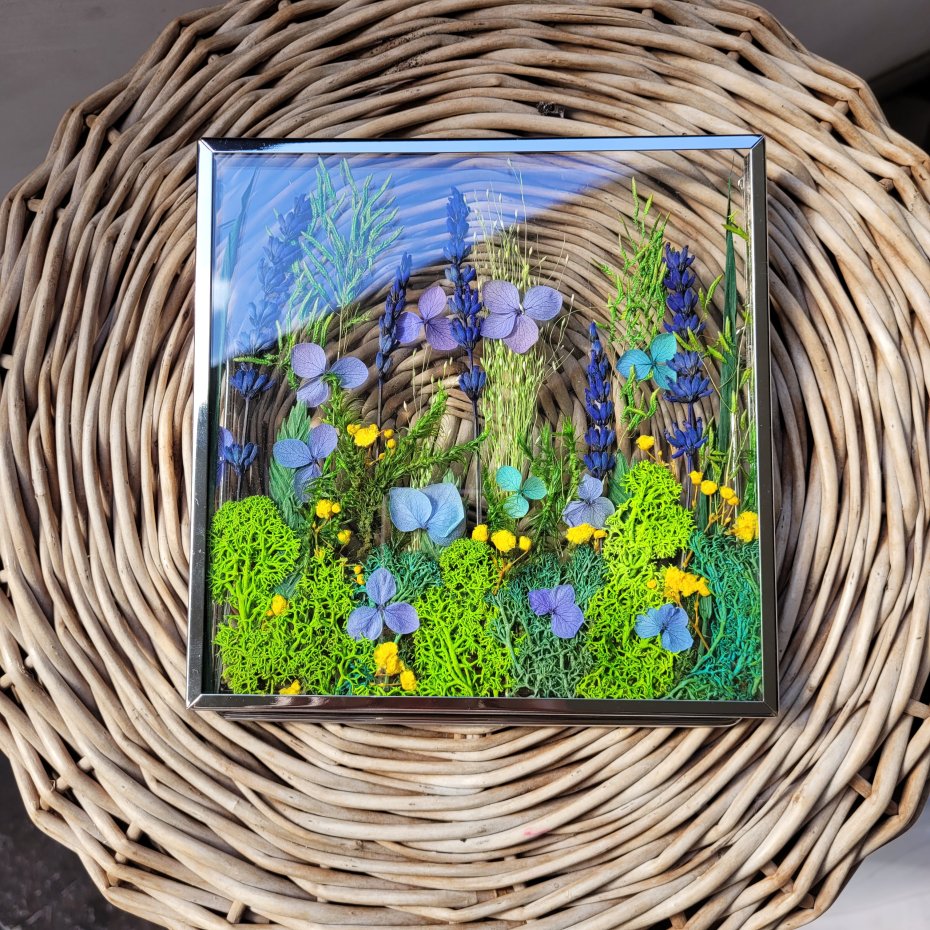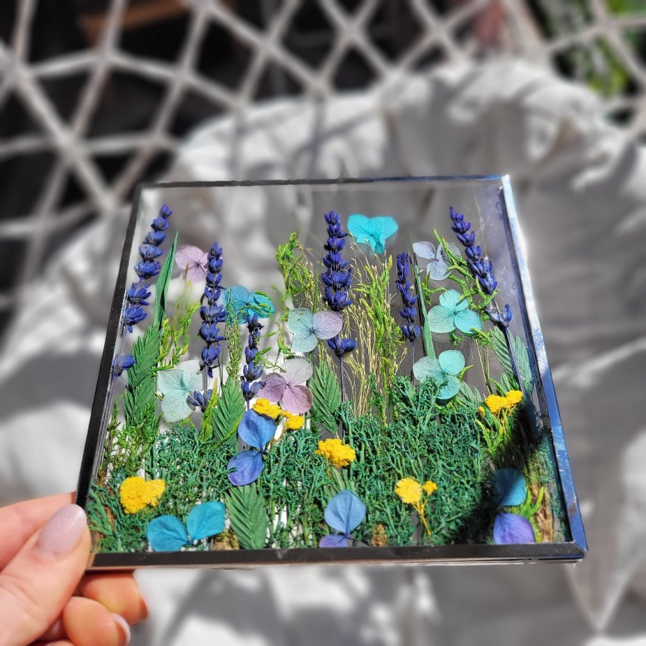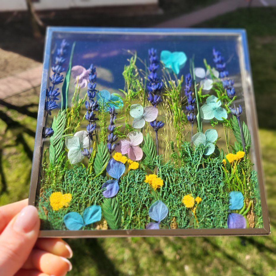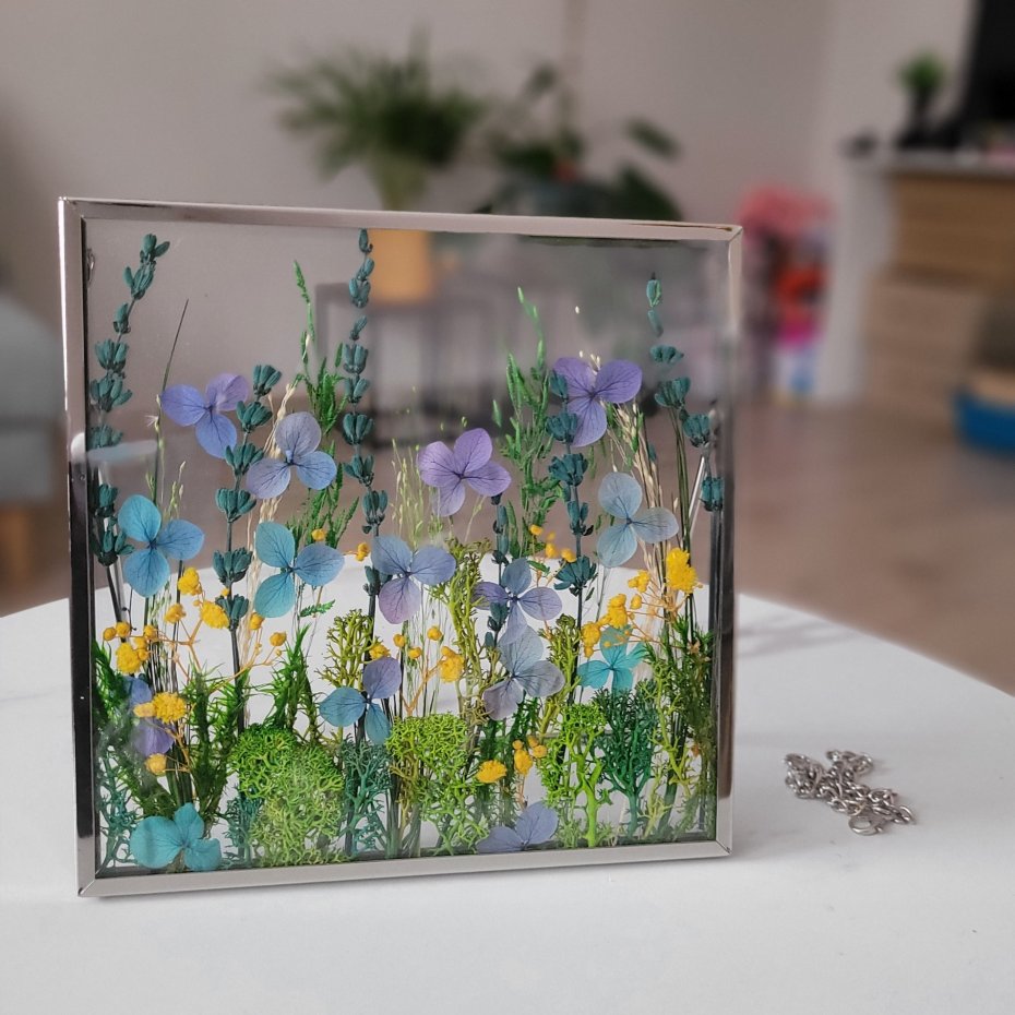 Oryginalny witraż dekoracyjny z suszonymi kwiatami to wyjątkowe dzieło sztuki ręcznie wykonane z dbałością o każdy detal. Unikalny wzór i subtelne piękno suszonych kwiatów tworzą ciepłą i naturalną atmosferę, doskonale dopełniając wystrój wnętrza. Ramkę można zarówno postawić jak i powiesić na ścianie, dodając przestrzeni elegancji i przytulności. Idealny jako prezent lub stylowy element dekoracyjny do Twojego domu!