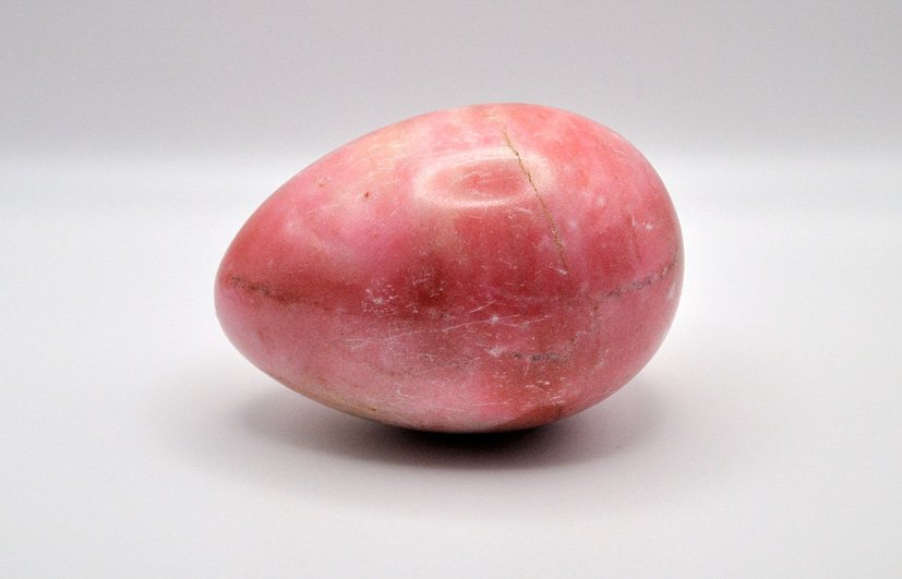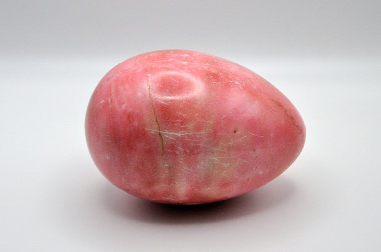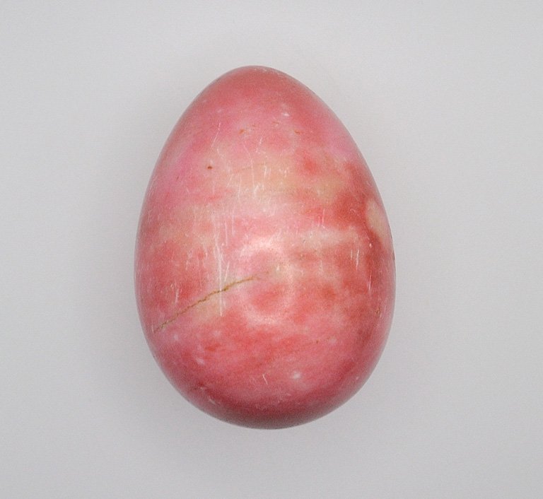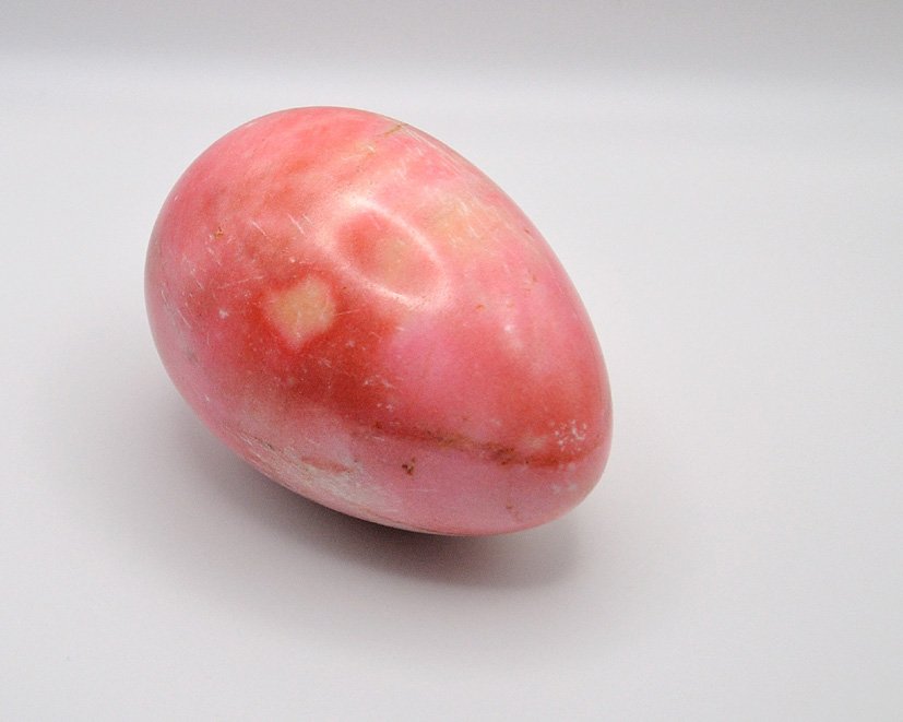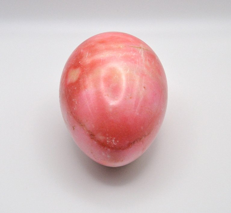 Dekoracyjne jajko wykonane z różowo - beżowo - białawego, nieprzejrzystego kamienia. Wypolerowane na wysoki połysk. Ciekawa ozdoba.