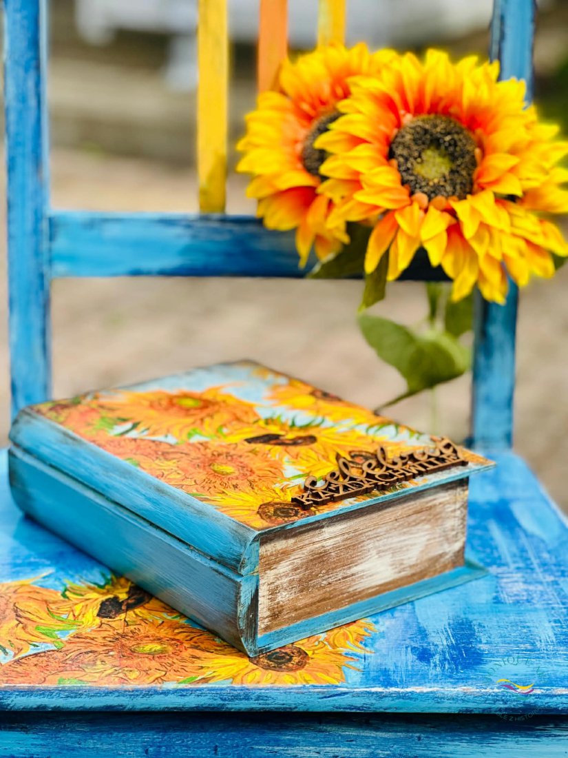 Stylizacja – farby kredowe w energetycznych kolorach i motyw słoneczników z malarstwa van Gogha