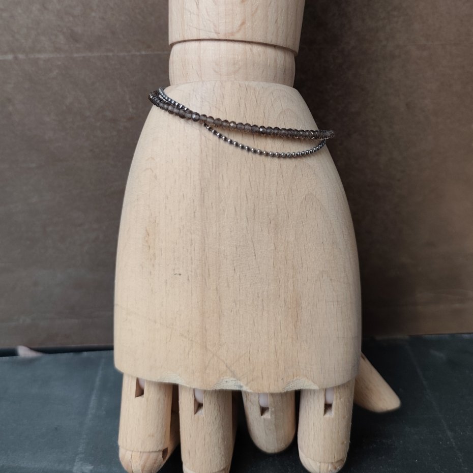 Bransoletka została wykonana ze srebra próby 925 oraz z naturalnego kwarcu dymnego.