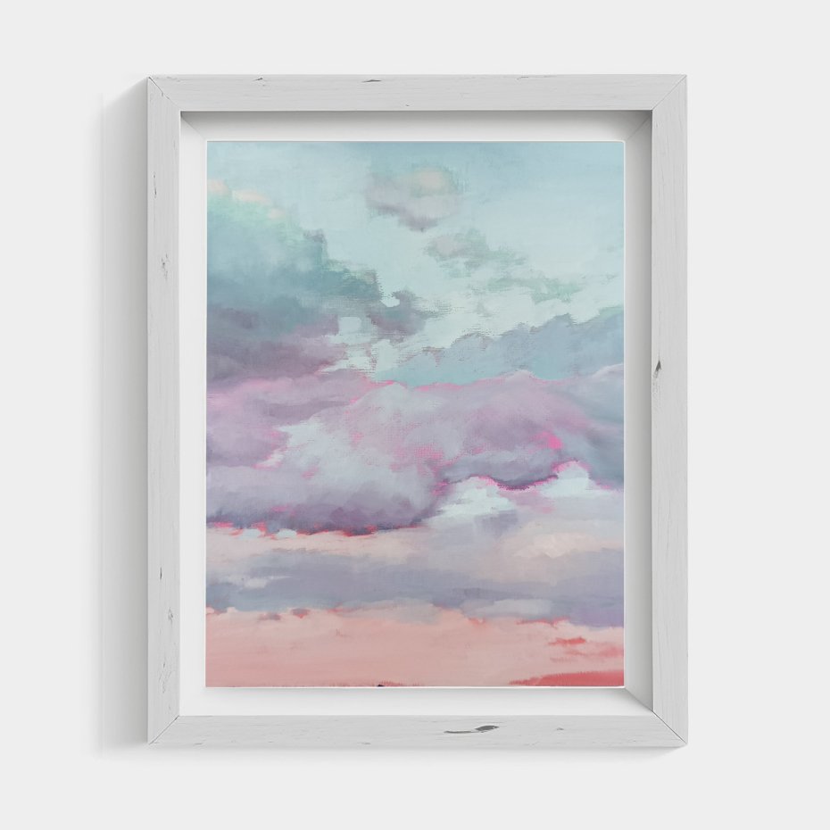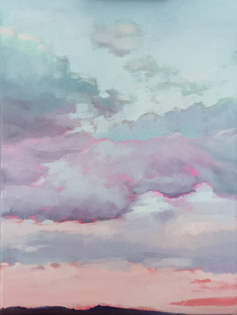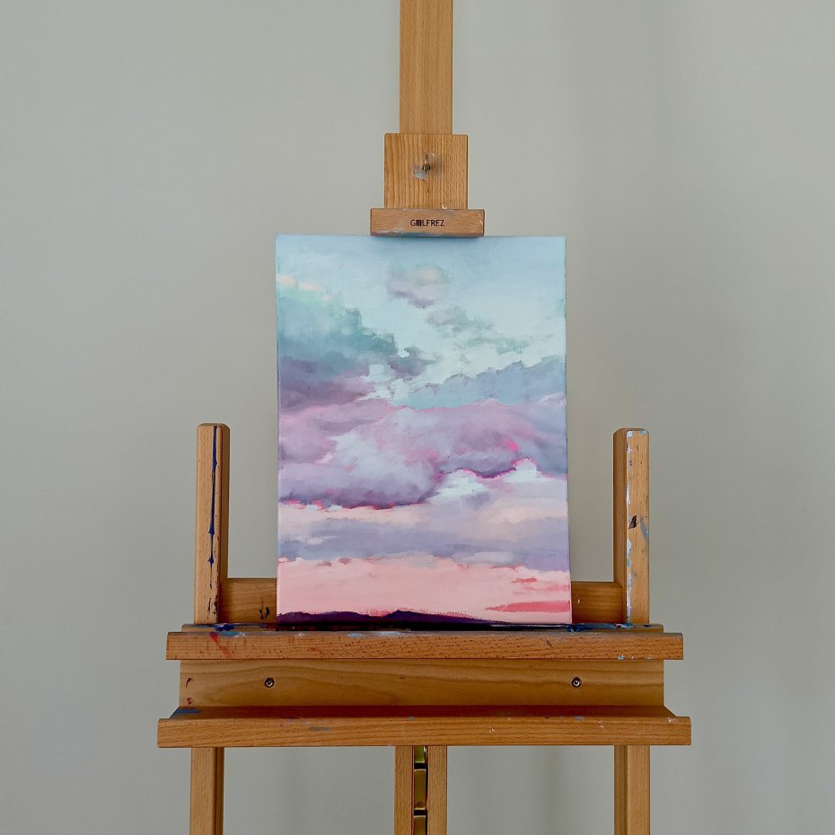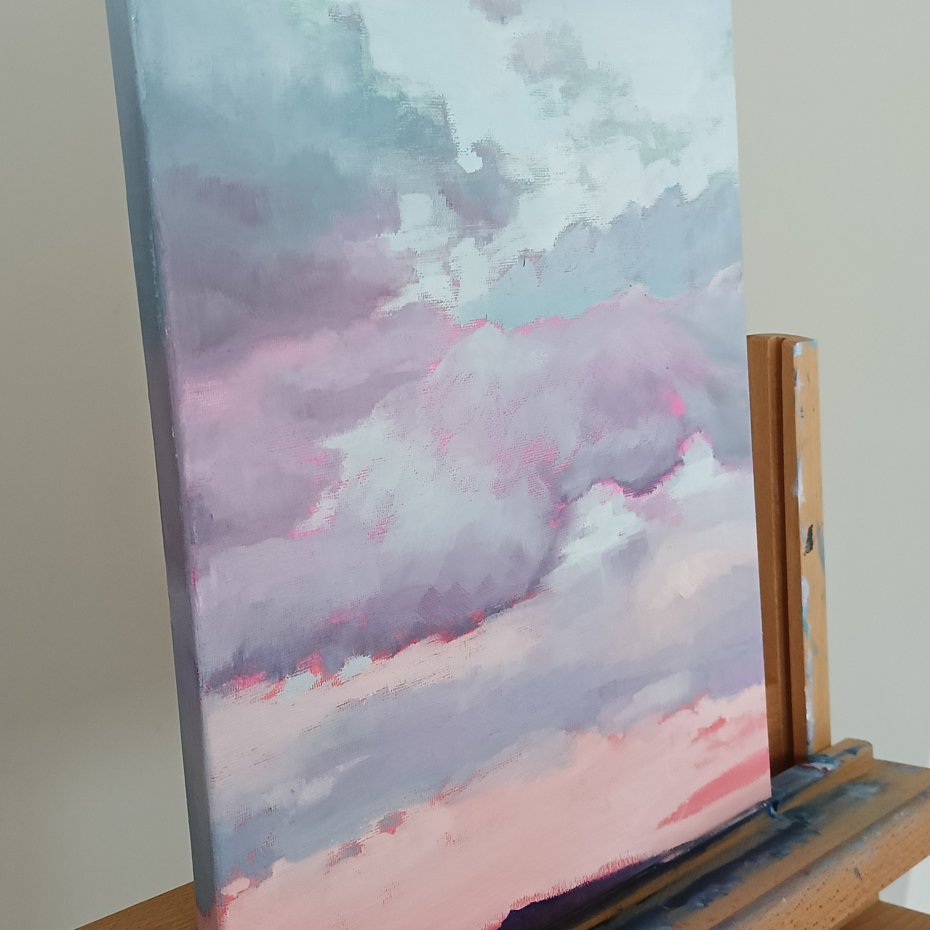 Delikatne chmury w pastelowych odcieniach – obraz olejny, który wnosi spokój i lekkość do wnętrza