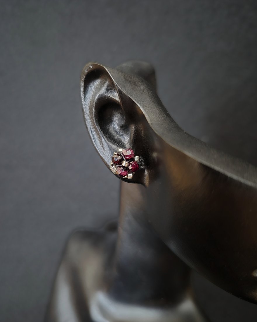Głębokie, bordowo-wiśniowe sztyfty z granatem przyciągają spojrzenie swoją intensywną barwą i elegancką prostotą. Srebrne akcenty subtelnie rozświetlają kamień, podkreślając jego szlachetny charakter. Niewielki rozmiar sprawia, że kolczyki są wygodne i idealne na co dzień, a jednocześnie stanowią wyrazisty, kobiecy detal w każdej stylizacji.