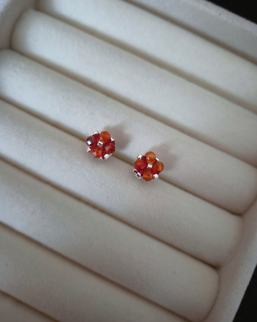 Sztyfty z karneolu przyciągają uwagę ciepłym, nasyconym odcieniem pomarańczu i minimalistyczną formą. W połączeniu ze srebrnymi detalami tworzą wyrazistą, ale wciąż subtelną kompozycję. Niewielki rozmiar sprawia, że są komfortowe i idealne zarówno na co dzień, jak i jako energetyczny akcent w stylizacji.