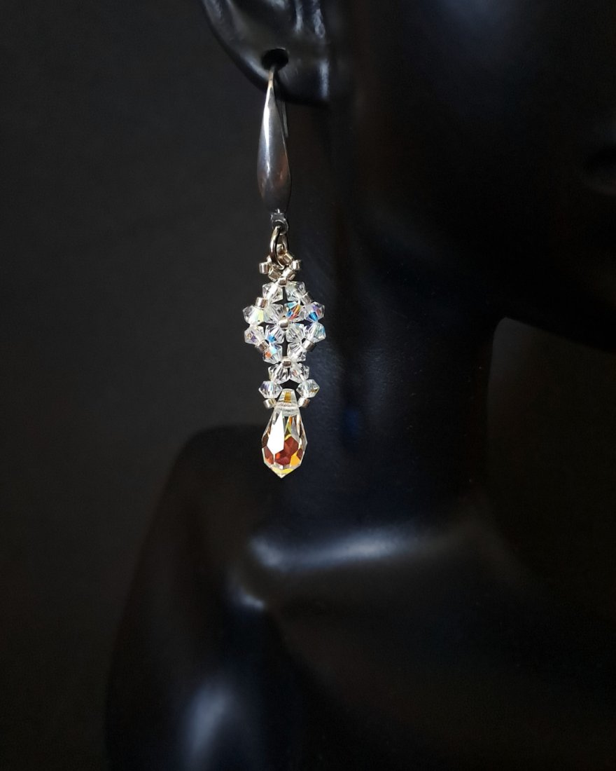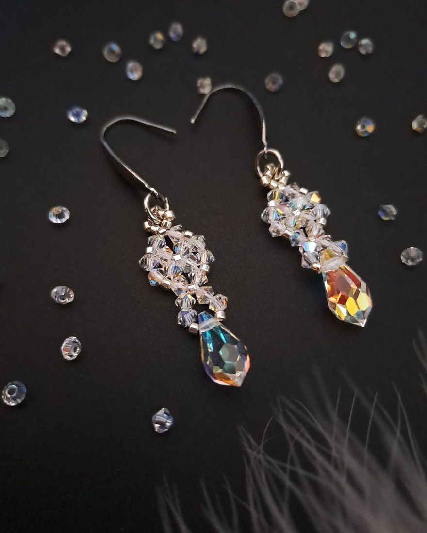 – Materiały: kryształki Preciosa Crystal AB, koraliki Miyuki Delica, stal nierdzewna