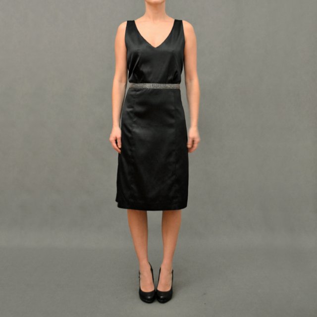 Prosta, elegancka, skromna a zarazem z klasą sukienka. Pod biustem zdobiony pas z mieniących koralików. Na podszewce. Polecam.