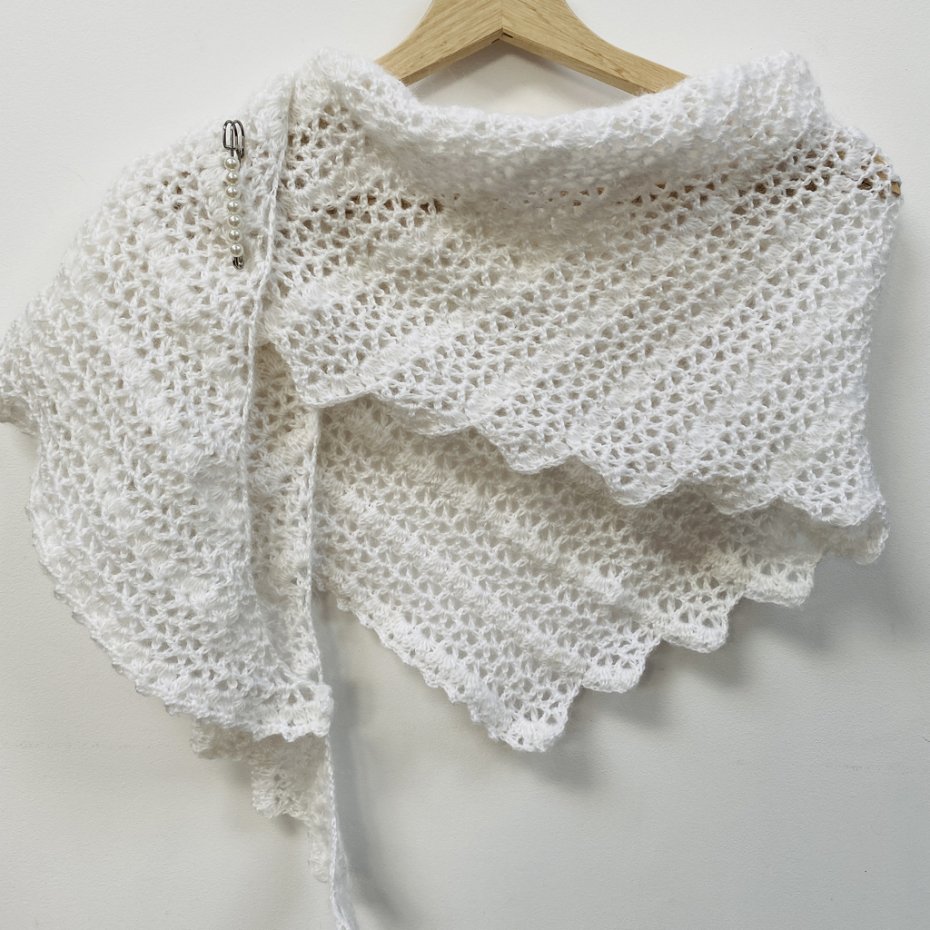 Delikatną, lekką etolę ślubną wykonałam ręcznie na szydełku z miękkiej włóczki Papatya Angora z subtelnym włoskiem. Klasyczna biel pięknie rozświetla stylizację i harmonijnie współgra z suknią ślubną – zarówno minimalistyczną, jak i romantyczną.