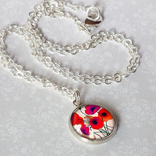 Subtelny, ręcznie wykonany naszyjnik z oryginalną grafiką artystyczną, zatopioną pod wypukłym szkiełkiem dającym efekt głębi, w oprawie w kolorze srebra. Wisiorek zawieszony na delikatnym, eleganckim łańcuszku z zapięciem w kolorze srebra. Grafika jest najwyższej jakości, wyraźna i nasycona, wywołana na wysokiej klasy papierze fotograficznym. Biżuteria hipoalergiczna.