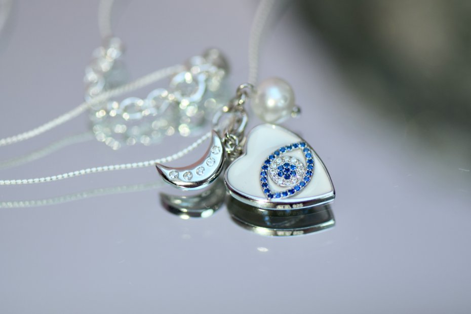 Delikatny jak mgiełka naszyjnik z potrójnym wisiorkiem.