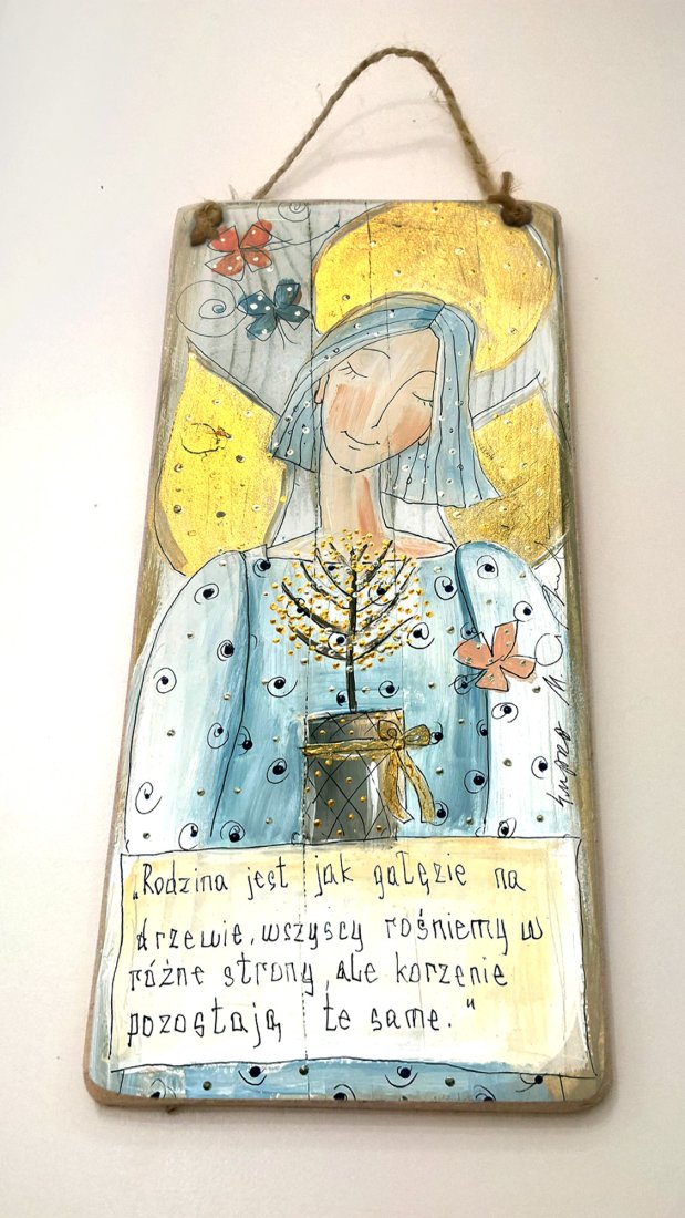 Reprodukcja obrazka mojego autorstwa umieszczonego na płycie MDF grubości 6 mm z zawieszką w postaci ekologicznego sznurka.