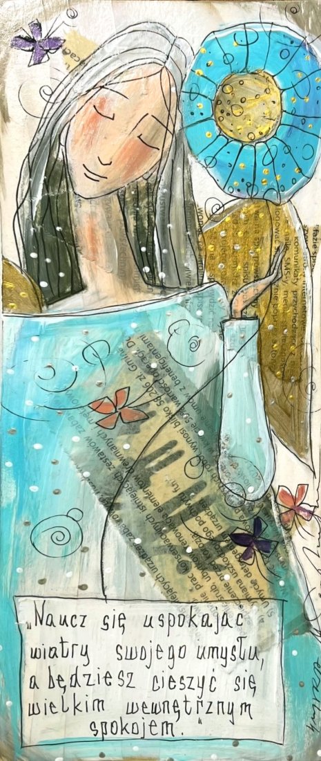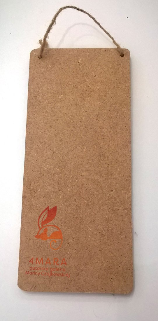 Reprodukcja autorskiej pracy, umieszczona na płycie MDF o grubości 6 mm, z zawieszką w postaci ekologicznego sznurka.