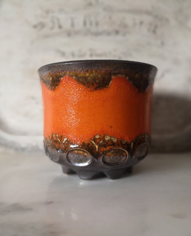Energetyczna designerska osłonka na doniczkę z lat 60-tych. Ceramika w modnym stylu do wyjątkowego wnętrza.