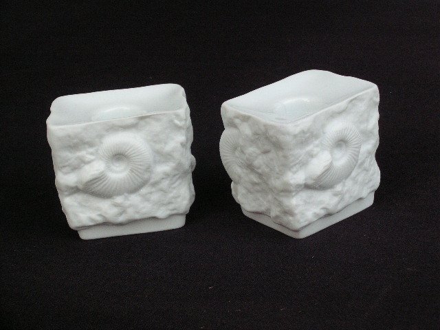 Intrygująco szlachetne świeczniki z lekkiej, białej, biskwitowej porcelany, z serii naturalistycznej AK Kaiser.Oryginał - Lata 50-te; widać artystyczne, wysokich lotów podejście wzornicze i dekoratorskie. Wyjątkowo ciekawe wnętrzarsko, bo i do klasycznej i do zupełnie nowoczesnej, minimalistycznej estetyki się nadają :) Na standardowe świece stołowe. 6,5 x 5,5 x 5 cm. Stan zachowania bardzo dobry.Bardzo rzadko spotykane - szczególnie w duecie i tak doskonałym stanie zachowania. Fantastyczne na arcy ciekawy i elegancki prezent :)
