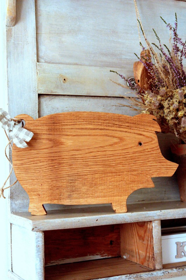 Świetna, porządna, dębowa deska do krojenia w kształcie świnki. Świetny dodatek do rustykalnej kuchni:) Zabezpieczony olejem nadającym się do kontaktu z żywnością:)