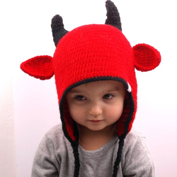 Przeurocza czapka pilotka - diabełek z rogami i uszami. Dla dzieci od 2 do ok.6lat. obwód czapeczki: 52-cm. długość troczków 30cm (nie licząc nauszników). Podobne czapki dziergamy również na mniejsze główki, większe główki i całkiem duże głowy :) W celu zamówienia innego rozmiaru bądź koloru, prosimy o kontakt przez formularz kontaktowy. Zapraszamy!
