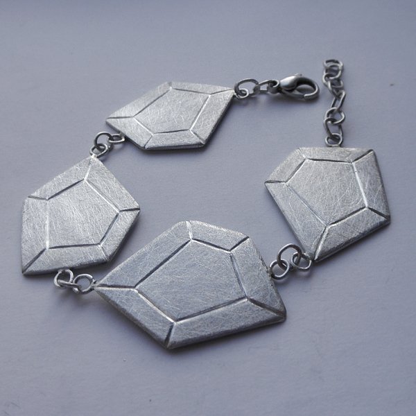 Diament – niezwykła moc i właściwości. Jego wygląd, kształt i urok gwarantują wspaniałą ozdobę. Kolekcje cechuje klasyczna i arystokratyczna elegancja. Piękny, przejrzyście doskonały, wyrafinowany kształt dodaje kolekcji ekstrawagancji i ekskluzywności. Bransoletka wykonana jest ze srebra. Srebro - próby 0,925, zmatowione, Szerokość bransoletki ok. 3cm. Całkowita długość bransoletki to ok. 23cm (bez zapięcia 17cm), z możliwością regulacji; zapięcie: karabińczyk.