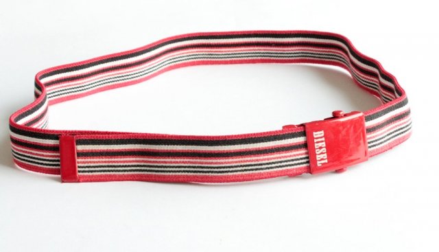 Pasek marki DIESEL wykonany z elastycznej gumy. Idealny do podkreślenia talii. Obwód regulowany.