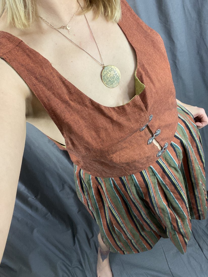 Folkowa bawarska sukienka/dirndl z płótna bawełnianego. Zapinana na haftki na przodzie.