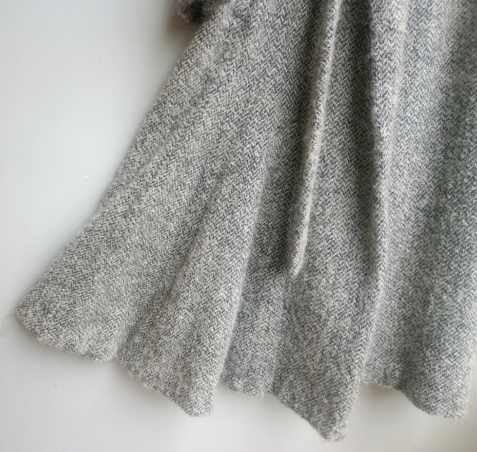 Skład: Brak metki ze składem, ale jest to bardzo miękka wełna z wyraźnym włosem (co widać na niektórych zdjęciach).
