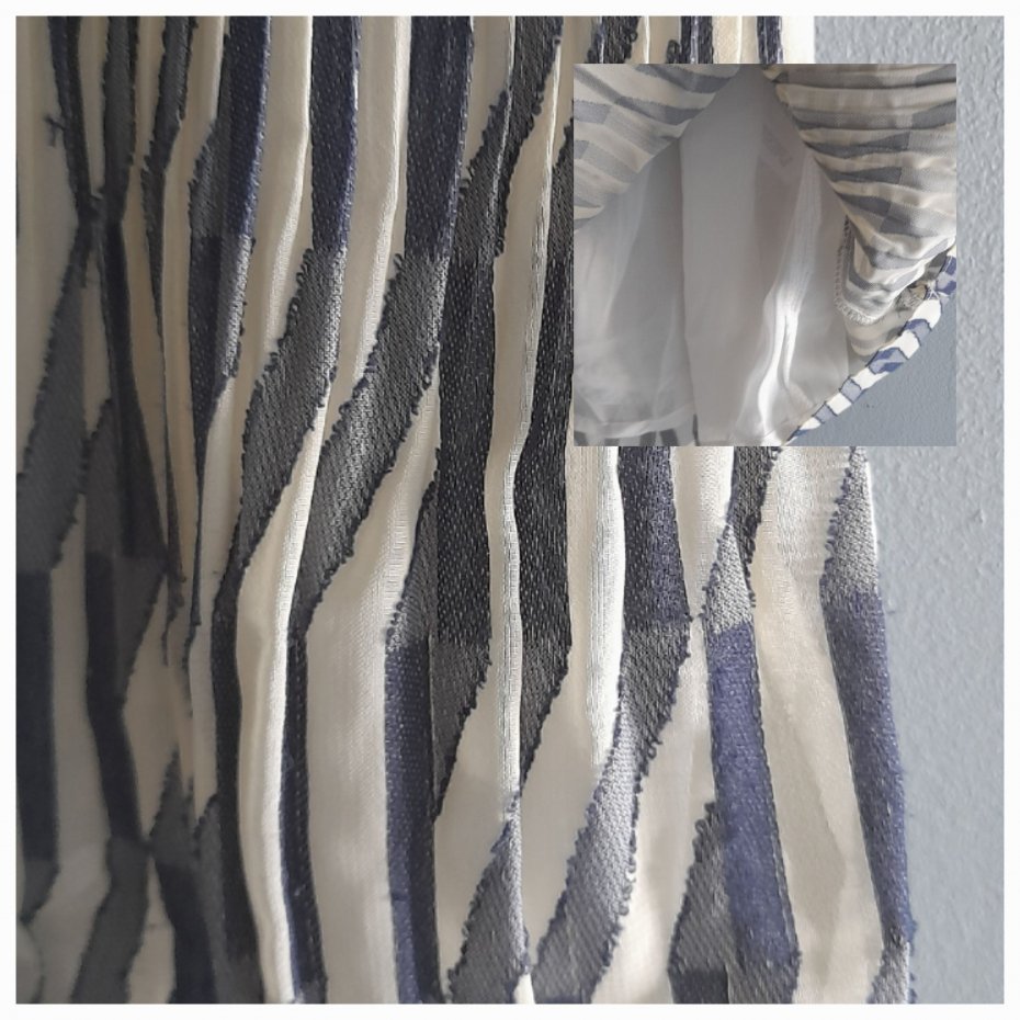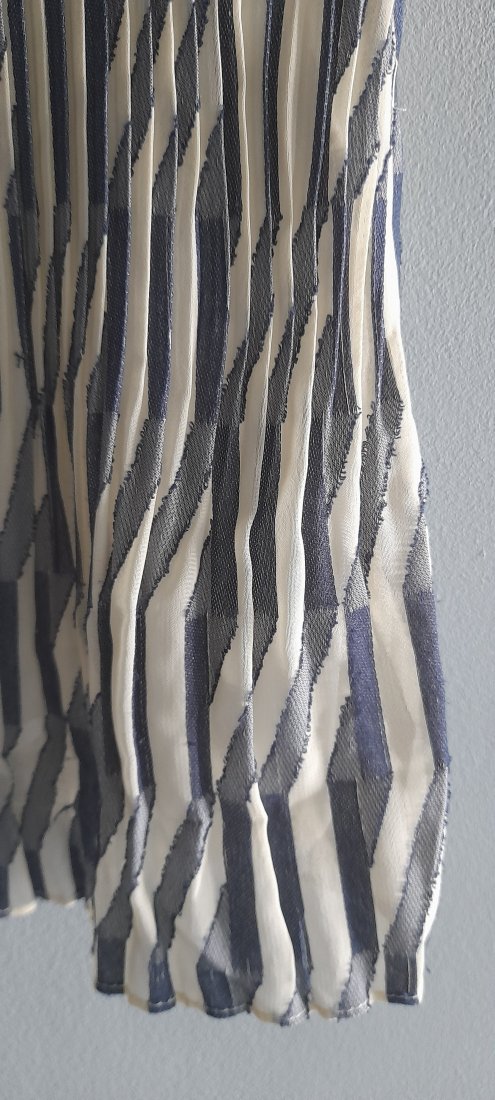 Plisowana dwuwarstwowa bluzka z żorżety poliestrowej , stan idealny, ecru z granatem, długość 65 szerokość pod pachami 50x2 bez naciągania plis