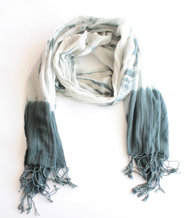 Miękki, duży szal w nonszalancki wzór. Wykonany prawdopodobnie z bawełny.