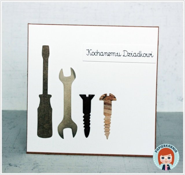 Kartka z papierowymi narzędziami dla dziadka. Idealna na imieniny, urodziny lub Dzień Dziadka.