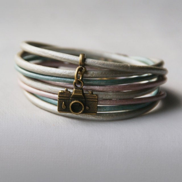 POMYSŁ NA PREZENT .. aparatki powracają w nowej wersji kolorystycznej .. delikatna bransoletka wykonana z 4 rzemieni ze 100% skórki naturalnej w odcieniach metalicznych/perłowych (2 rzemienie 2mm, 2 rzemienie 3mm). zawieszka i wykończenie w kolorze antycznego złota. długość regulowana za pomocą łańcuszka. BRANSOLETKA PASUJE NA NADGARSTEK OD 14,5CM. możesz ją nosić samodzielnie lub dowolnie łączyć z innymi bransoletkami z tej serii. świetnie prezentuje się też w zestawieniu z bransoletkami z kamieni naturalnych. ZOBACZ CAŁĄ KOLEKCJĘ!!! ... MOJA BIŻU ZAWSZE PODRÓŻUJE OZDOBNIE ZAPAKOWANA (opakowanie także handmade) ;-) ..